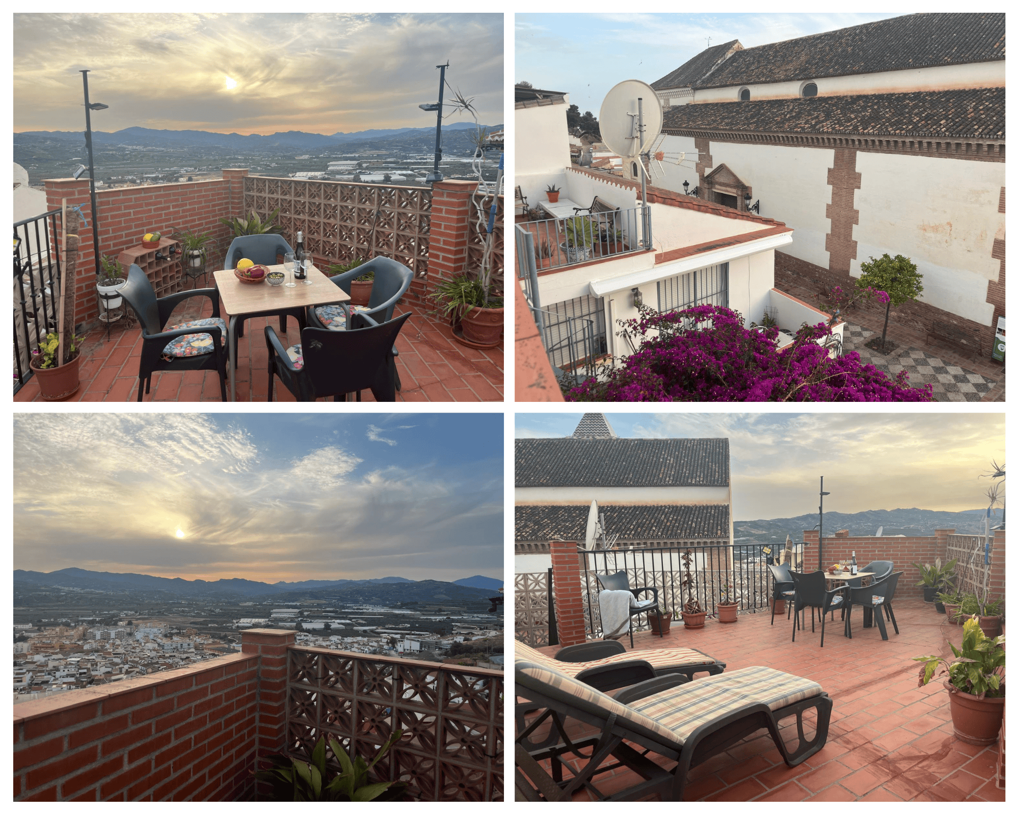Taras w Casa del Mirlo na pewno będzie częstym miejscem odpoczynku gości. To tutaj z samego rana można wypić kawę, patrząc na budzące się miasto. To tutaj wieczorami, gdy upał troszkę zelży można się delektować wspaniałymi zachodami słońca. Do dyspozycji gości poza wspaniałymi widokami na tarasie jest stół z krzesłami oraz dwa leżaki.